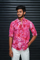 Men’s Tie Dye Printed Shirt – Premium Slim Fit Casual Designer Shirt - Hot Pink